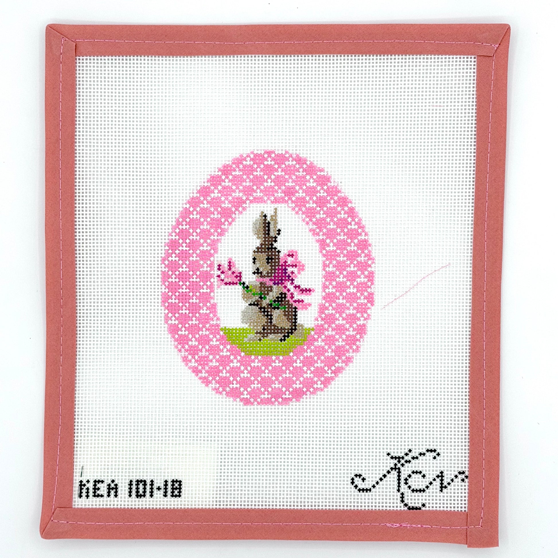 Kelly Clark Needlepoint - Pink Bunny with Tulip Egg